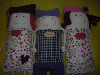 estàn confeccionadas en forma artesanal, con materiales nuevos: lienzo, telas de algodòn,polar, puntillas, vellòn...